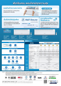 – รับประกันแผลคอยล์ร้อนและแผงคอยล์เย็น 3 ปี , คอมเพรสเซอร์ 5 ปี , อะไหล่ 1 ปี ที่ศูนย์บริการมิตซูบิชิทั่วประเทศ